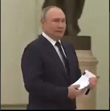 در یک کلیپ ویدیویی کوتاه که در فضای مجازی به اشتراک گذاشته شده است، پوتین دیده می شود که به آرامی راه می رود و به نظر می رسد که اخم کرده است.
