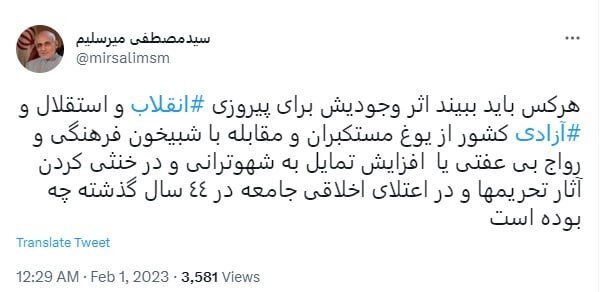 مصطفی میرسلیم، عضو مجمع تشخیص مصلحت نظام نوشت: