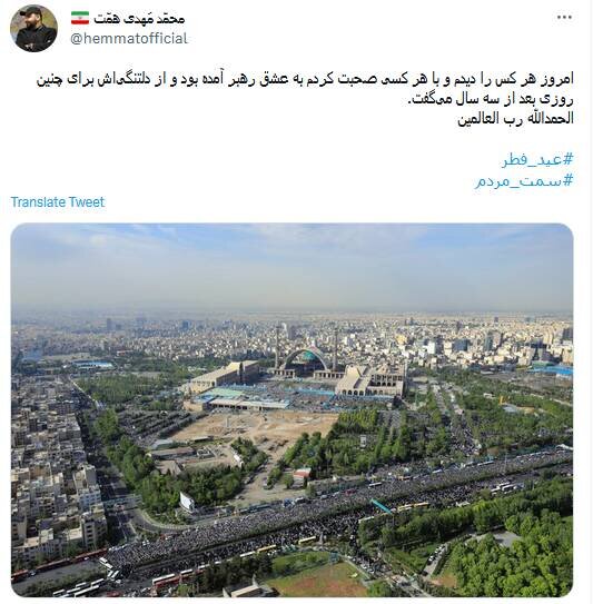 توییت «پسر شهید همت» درباره نماز عید فطر