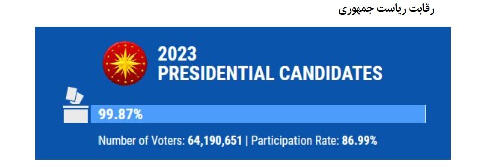 میزان مشارکت مردمی در رقابت ریاست جمهوری ترکیه ۸۶.۹۹ درصد یا به عبارتی ۵۵.۸ میلیون از ۶۴ میلیون و ۱۹۰ هزار و ۶۵۱ واجد شرایط رای دادن رای اعلام شده است.