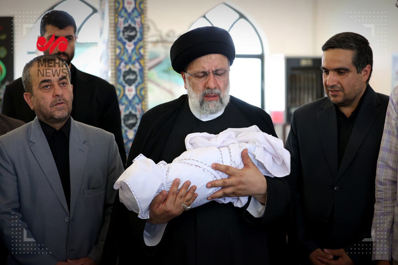 مهر نوشت: رئیس جمهور با حضور در جمع مردم در مزار باقریه بیرجند، در گوش نوزاد بیرجندی اذان را قرائت کرد
